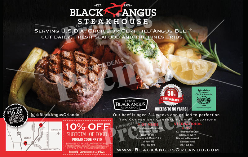 Black Angus Steakhouse is a steakhouse offering a variety of cuts of beef, along with seafood and other American cuisine options.
