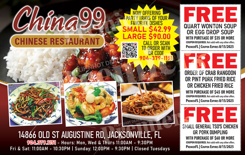 China 99 Restaurant offers a diverse selection of Chinese cuisine, providing traditional dishes in a comfortable setting. They aim to deliver flavorful meals that capture the essence of Chinese culinary traditions.