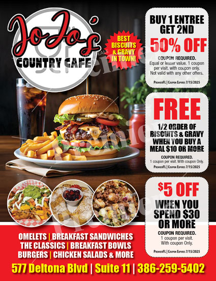 JoJoโs Country Cafe is a neighborhood cafรฉ serving breakfast, brunch, burgers, and comfort food in a cozy, welcoming setting.