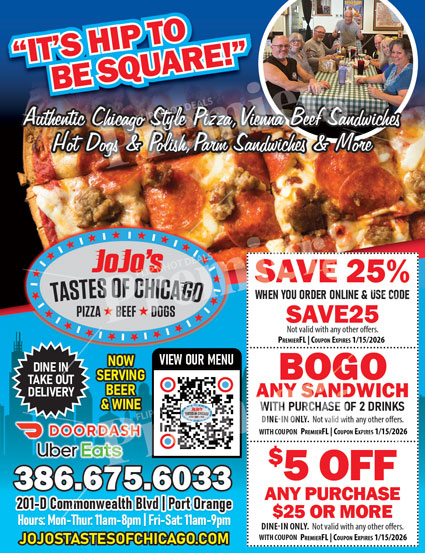 JoJoโs Taste of Chicago brings the bold, comforting flavors of Chicago-style cuisine to Port Orange, Florida. Known for its deep-dish pizza, Vienna beef hot dogs, Polish sausage, and classic Italian beef sandwiches, JoJoโs offers a casual, welcoming spot for anyone craving true Windy City favorites.