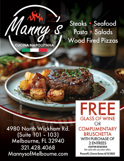 Mannyโ€™s Cucina Napoletana is a family-owned Italian restaurant in Cocoa, Florida, specializing in Neapolitan-style pizza and handmade pasta. The menu includes a variety of Italian dishes crafted with fresh ingredients. The restaurant is known for its authentic flavors and welcoming atmosphere.