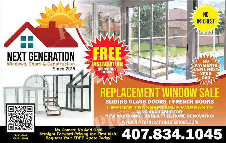 Next Generation Windows, Doors & Construction, based in Orlando, FL, specializes in energy-efficient, custom-designed windows and doors. They offer a wide range of products, including bi-fold doors, patio doors, entry doors, and porch enclosures. All installations come with a lifetime warranty and financing options. Their team provides free in-home quotes, ensuring that each project meets the client’s style and budget.