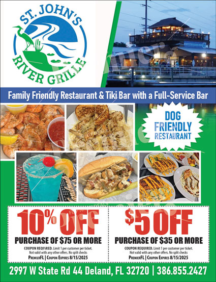 St. Johnโs River Grille is a casual bar & grill offering a menu of American-style food, seafood, and drinks in a relaxed riverside atmosphere.