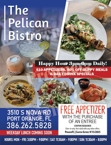 The Pelican Bistro is a restaurant serving a range of dishes (often seafood and bistroโstyle fare) in a casual dining atmosphere, aiming for a relaxed yet refined dining experience.