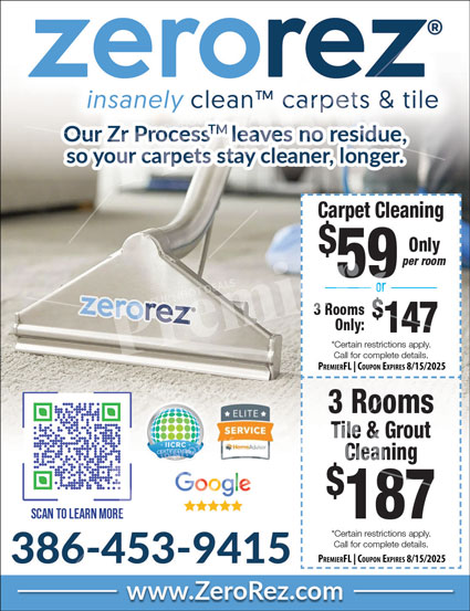 Zerorez delivers revolutionary carpet, tile, and upholstery cleaning using its patented Zrโข Process โ leaving no residue behind so your floors stay cleaner, longer. As one of Floridaโs highest-rated cleaning services, Zerorez is known for its cutting-edge technology and commitment to customer satisfaction.